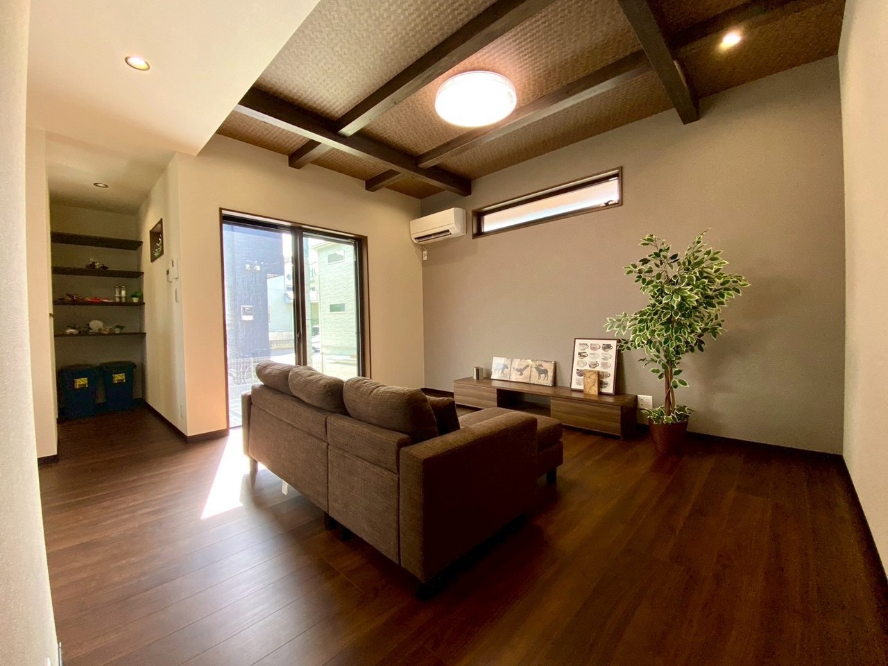 天井高一部約2.7Mm、ゆとりある和モダンスタイルの井桁梁見せ天井