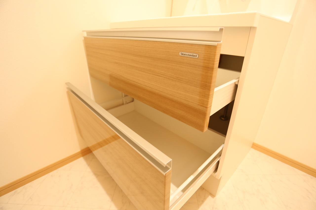 鍋など上から一目で確認でき、奥にしまったものでも楽に取り出せるスライド収納。