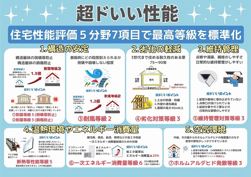 【住宅性能表示制度5分野7項目で最高等級を取得】
