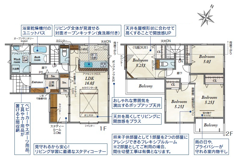 - ※完成予想図はいずれも外構、植栽、外観等実際のものとは多少異なることがあります。